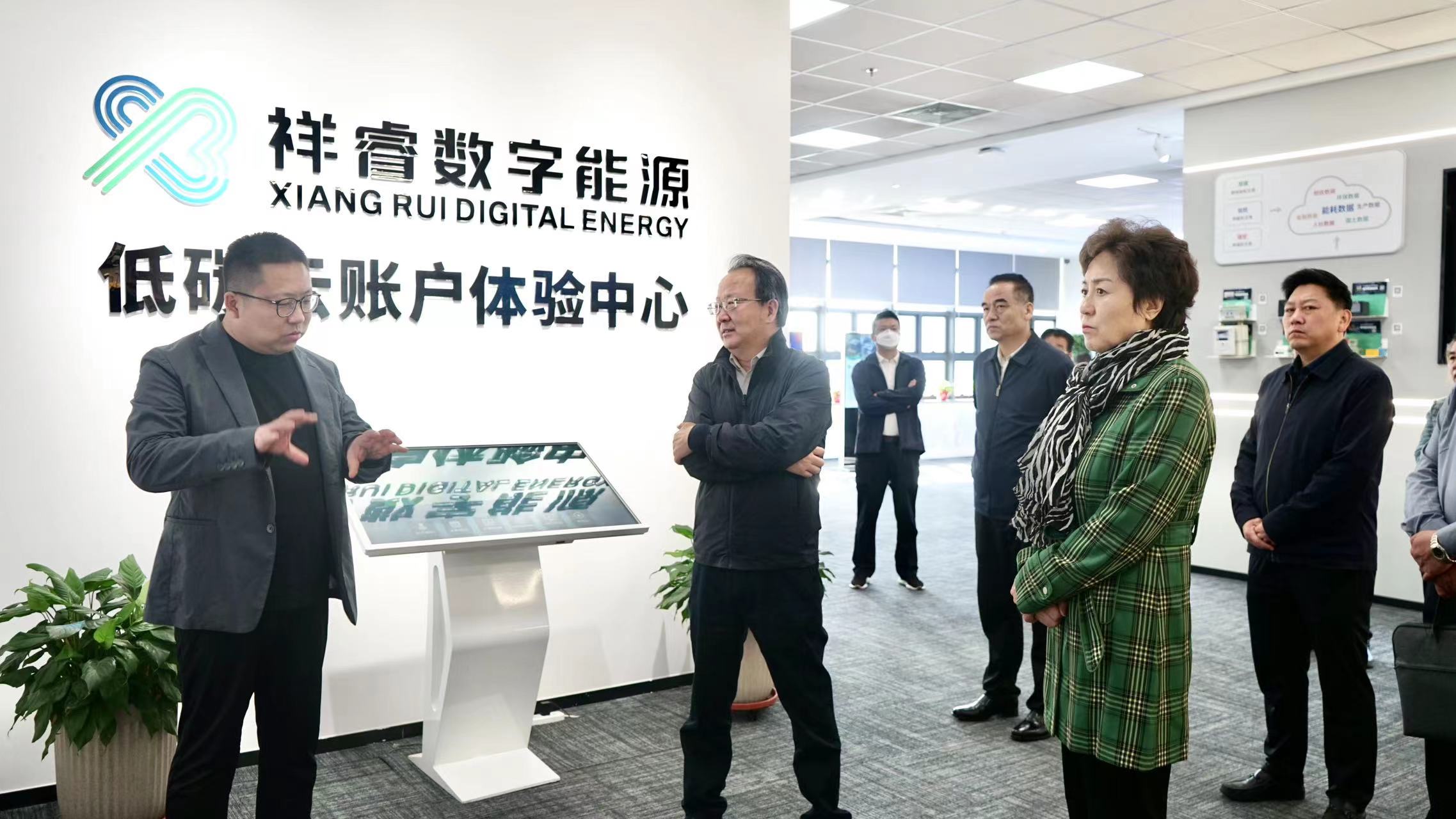 在祥睿能源,李曉波等領(lǐng)導(dǎo)參觀了祥睿數(shù)字能源展廳,深入了解祥睿能源發(fā)展歷程、核心業(yè)務(wù)、成果案例等情況。祥睿能源電碳交易中心總經(jīng)理王文彪、低碳云中心總經(jīng)理尉言分別結(jié)合“明銳云”電力交易、“低碳云賬戶”輔助平臺(tái)演示介紹了祥睿能源在電力交易、綠色低碳科技與運(yùn)營實(shí)踐路徑。