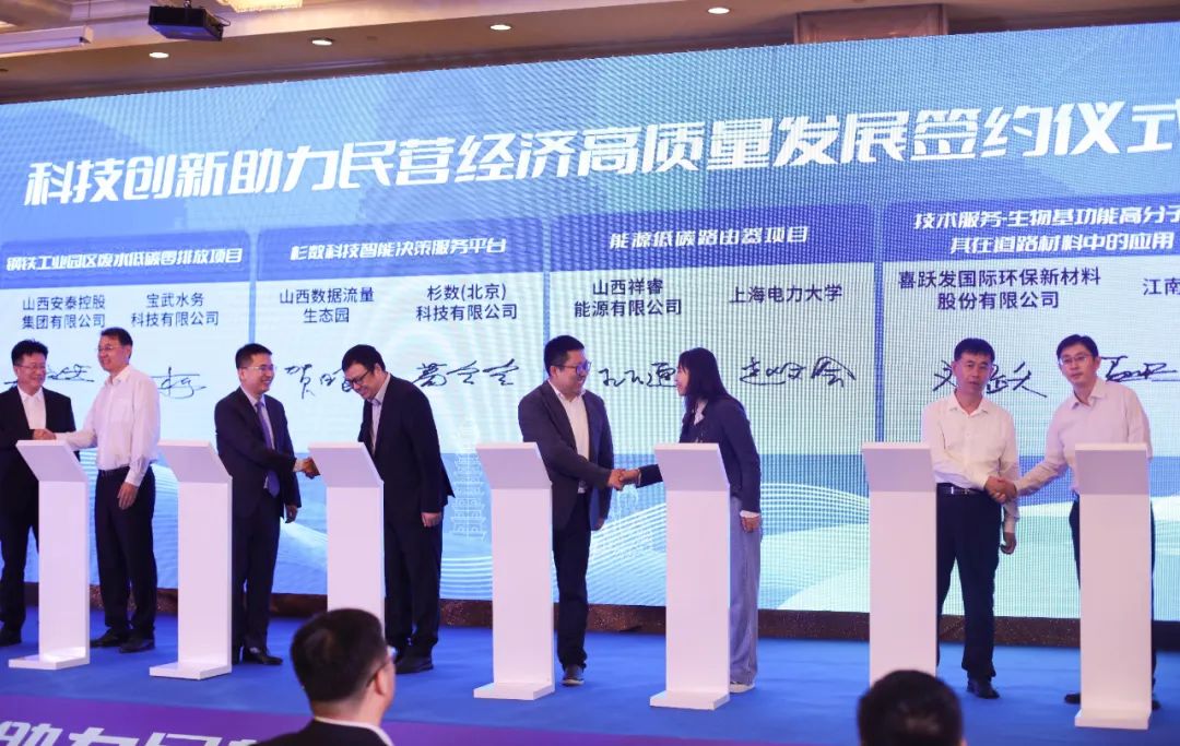 山西祥睿能源有限公司、山西安泰控股集團有限公司、山西晉城鋼鐵控股集團有限公司、山西數(shù)據(jù)流量生態(tài)園等11家山西民營企業(yè)與寶武水務科技有限公司、中冶京誠工程技術有限公司、杉數(shù)(北京)科技有限公司等11家企業(yè)、高等院校、科研院所進行了科技成果轉(zhuǎn)化運用簽約。 活動期間還舉辦了“合作共建數(shù)字綠色產(chǎn)業(yè)體系 助力山西民營經(jīng)濟高質(zhì)量發(fā)展”分論壇和異地晉商會長聯(lián)席會暨晉滬兩地青年企業(yè)家交流研討會。 |