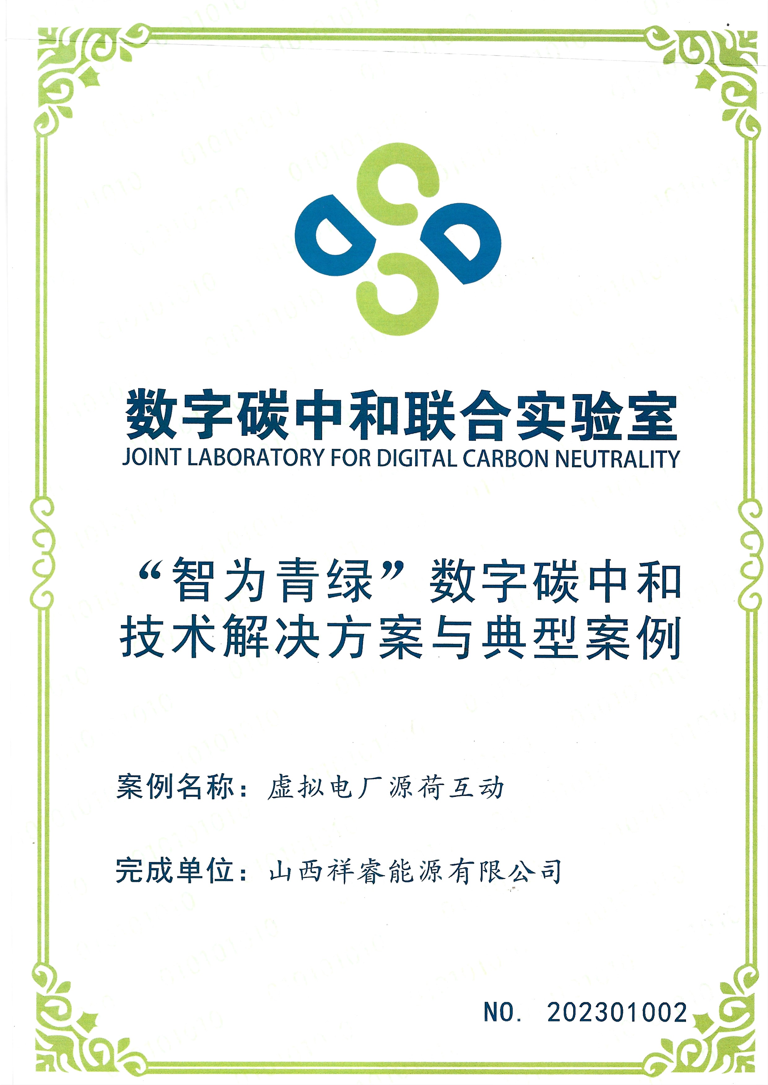 | 祥睿能源《虛擬電廠源荷互動(dòng)》入選數(shù)字碳中和實(shí)驗(yàn)室“智為青綠”典型案例 |