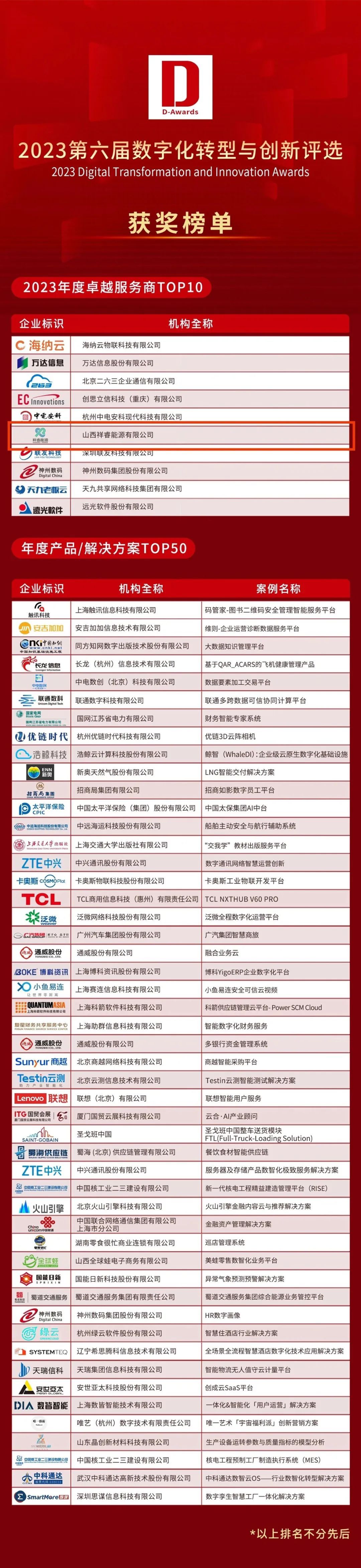 | 祥睿能源榮膺2023數(shù)字化轉(zhuǎn)型與創(chuàng)新評(píng)選 年度“卓越服務(wù)商TOP10” |